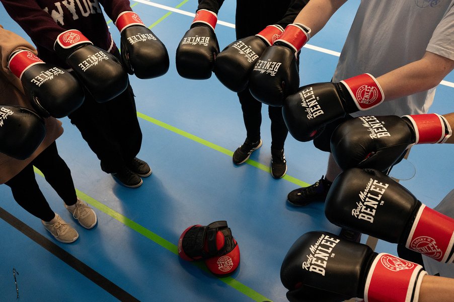 Beim letzten Halt ging es für alle zurück in die Schule – zum Boxen! Genauer, zum pädagogischen Boxen. Eines von vielen Angeboten des Gefangene helfen Jugendlichen e.V. Die Idee zu dem Verein hatten 1996 drei Häftlinge der JVA Fuhlsbüttel, genannt „Santa Fu“. Seitdem ist der Verein gewachsen. Inhaftierte sowie Helferinnen und Helfer bieten ein umfangreiches Angebot von Präventionsarbeit mit Besuchen in Justizvollzugsanstalten, Anti-Gewalt-Training, Suchtprävention, Aufklärung zum Thema Cybermobbing, Deeskalationstraining und sogar pädagogisches Boxen. Im Rahmen der Stiftung wurde der Präventionsunterricht mit 3.000 € gesponsert.